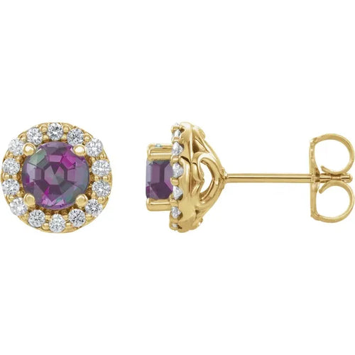 14k Yellow Gold Alexandrite and Diamond Earrings
